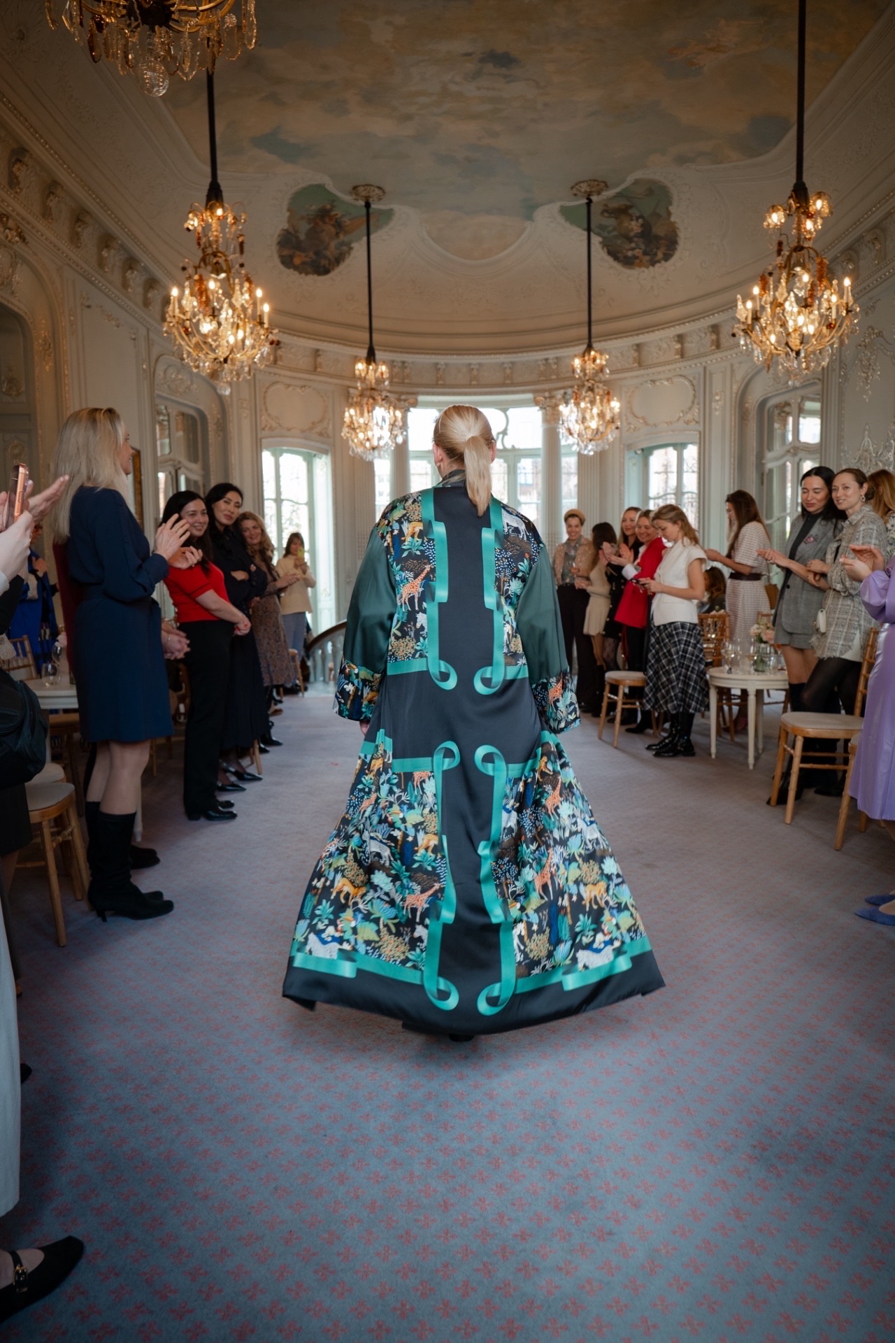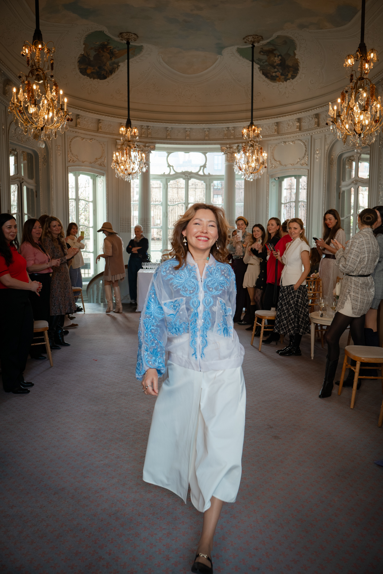 Лана, между прочим, привезла коллекцию Asian Spirit в Лондон специально к этой встрече. И вместо традиционного подиума устроили куда более интересную историю: гости постепенно превращались из зрителей в моделей. Платья можно было рассмотреть вблизи, примерить, выбрать, купить или договориться с дизайнером о личной примерке в последующие дни. Всё происходило естественно, весело и без лишнего пафоса.