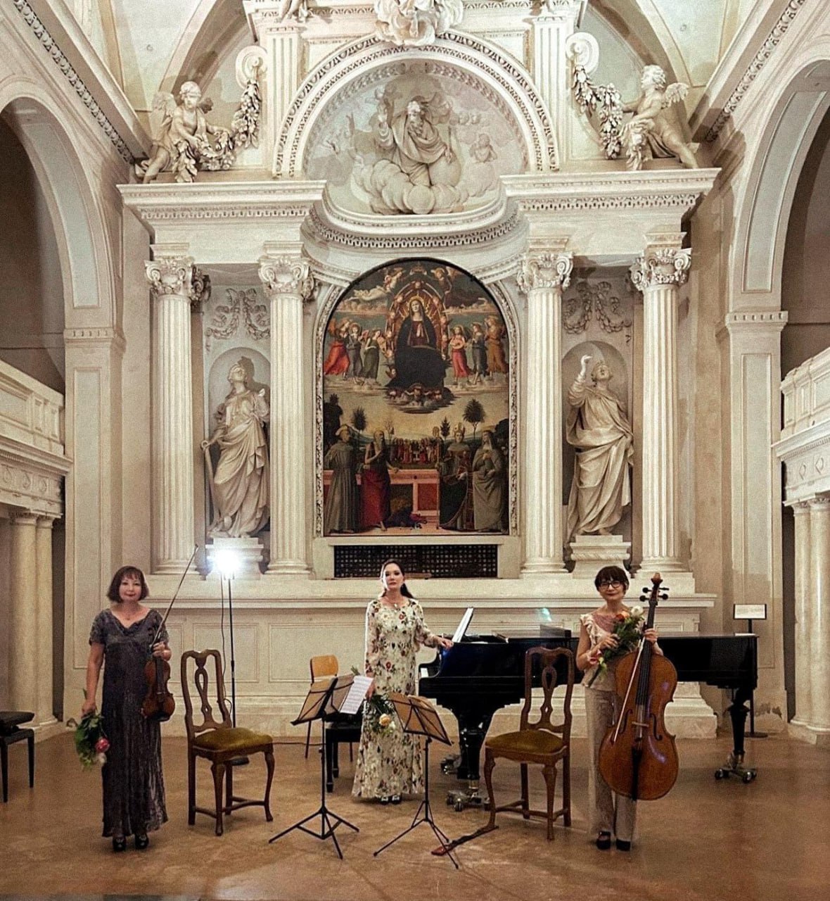 Нет, мы не переучивались. Просто постепенно ярче проявилась наша внутренняя театральность. Однажды мы играли фортепианное трио латвийского композитора: у меня была большая пауза, чуть ли не страница, пока сестры играли соло вдвоем. И я подумала: будет уместно мне надевать перчатки. Это была музыка, которая могла бы звучать на домашних музыкальных вечерах, куда дамы приходили по-вечернему разодетые. Я медленно надевала перчатки, пока сестры играли, потом медленно снимала, а потом сразу вступала – и этот жест все помнят уже не знаю, сколько лет.
