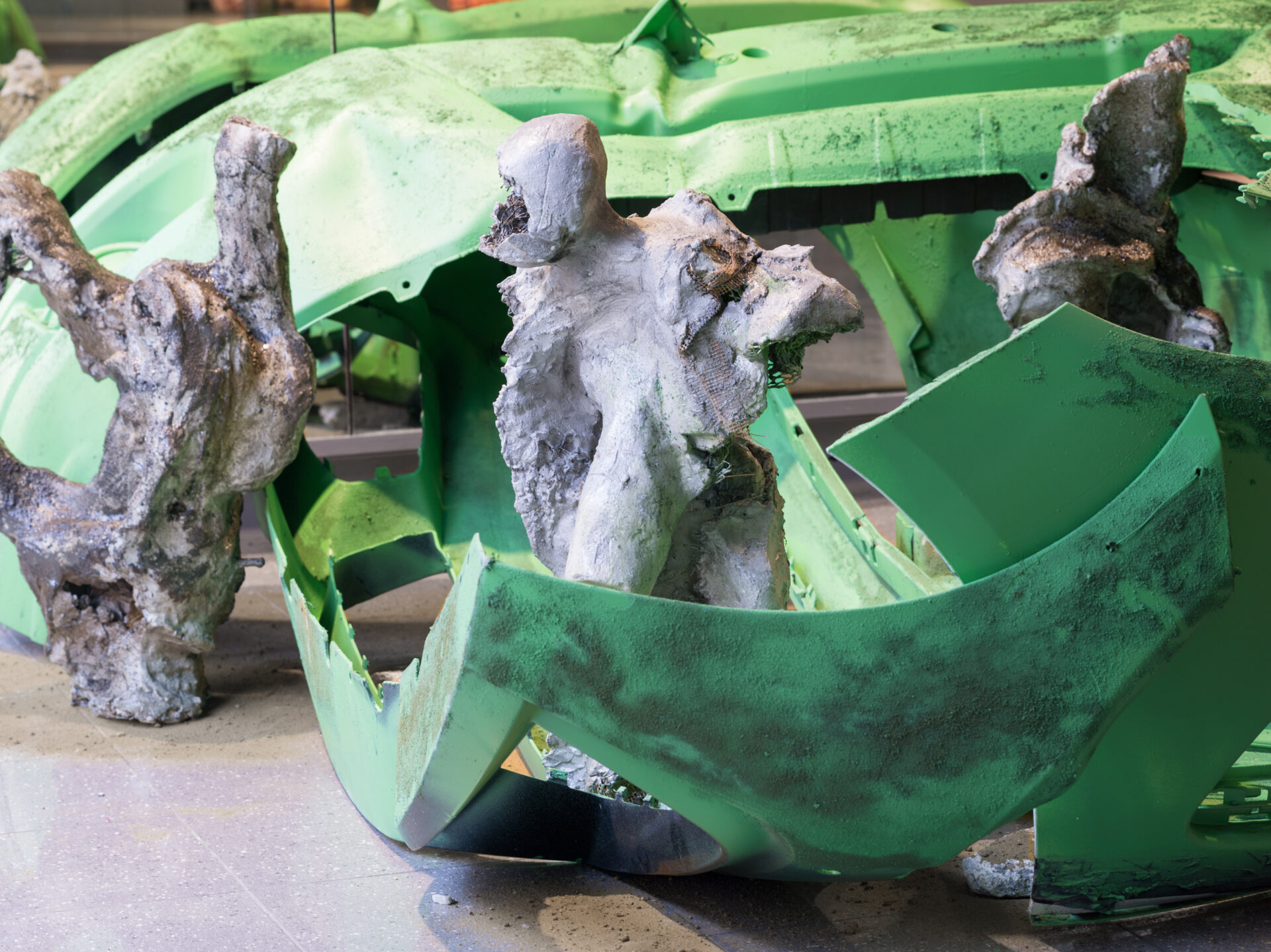 Kirill Basalaev’s installation contains the sculptures from the BodyResemblance series, dug out of the ground and exposing a bound skeleton, have to reinvent a presumed lost form. The trauma in this case is not collective, but personal. The whole monolith of memories is itself transformed by the passage of time and disintegrates to distortion. The alienation of the artist from his or her own experience originates from these changes.