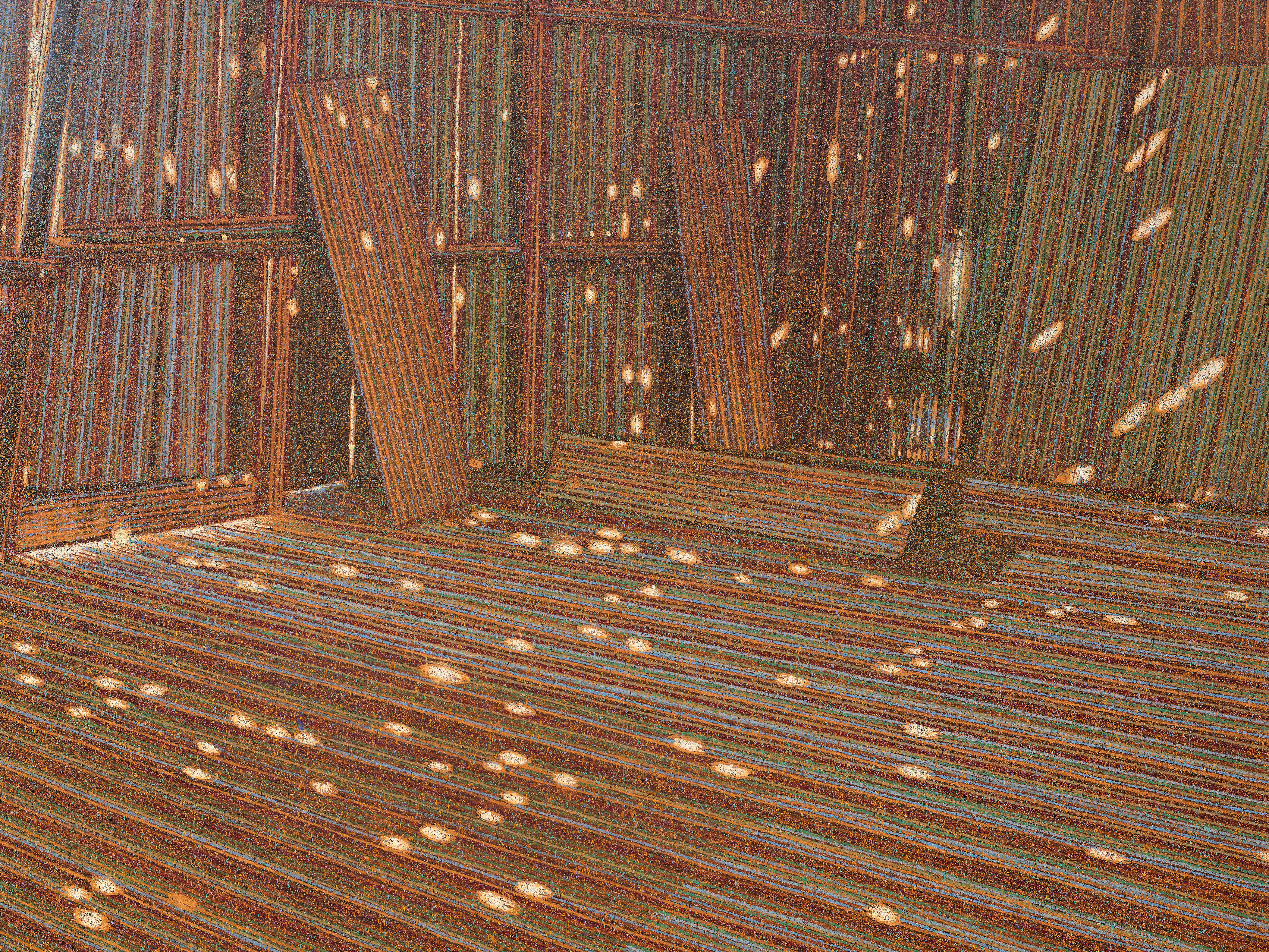 Marco Bizzarri’s images of abandoned interiors register the condition of materials: blurred outlines, time-altered walls, and surfaces that seem to have shifted into another mode of existence. The artist carefully observes how prolonged inactivity affects a place and how traces of past events accumulate within it.