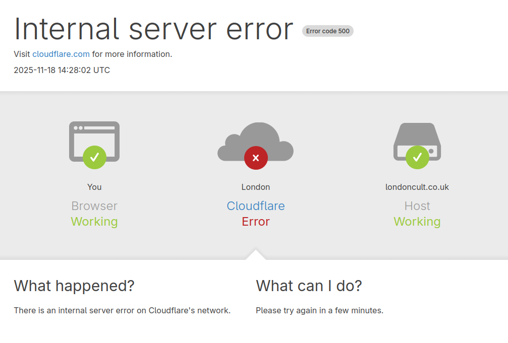 Во вторник миллионы пользователей оказались перед «запертой дверью» сайтов и чатов. Утро для них началось не с чашки кофе, а с раздражающего сообщения на экране: «Internal server error». Один из крупнейших «невидимых» столпов интернета, компания Cloudflare, обслуживающая около 20% всех сайтов в мире, переживает масштабный сбой. Первые сообщения о проблеме появились около 11 утра. Популярные сайты и онлайн-сервисы, от Discord и Shopify до GitHub и X (Twitter), просто перестали работать.