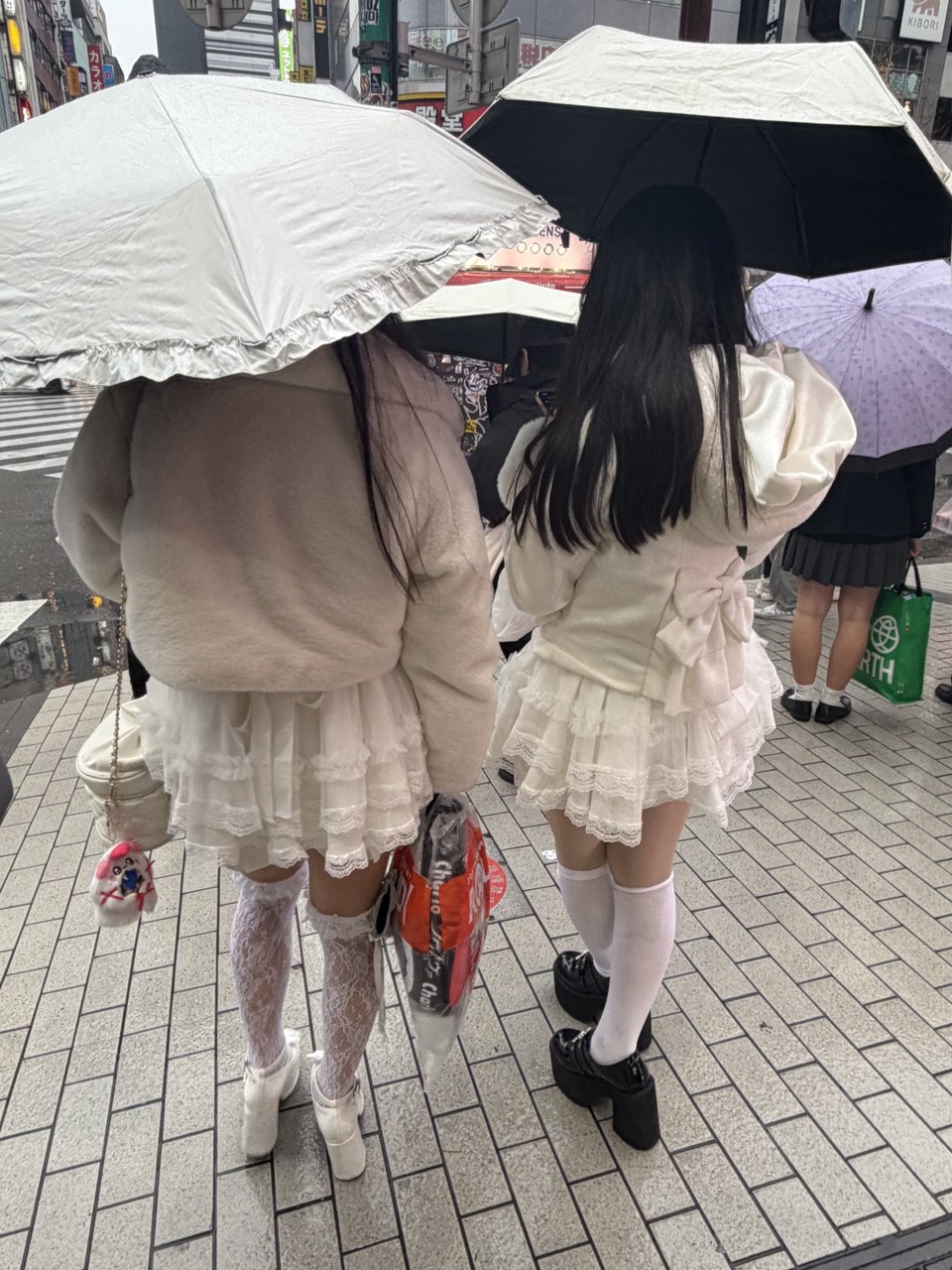 Самые узнаваемые и стереотипные районы Синдзюку и Сибуя становятся пространством с архитектурой, буквально созданной неоновыми вывесками: они ложатся на здания как гигантская подсветка, а внизу непрерывно движется поток людей. Среди них девушки и парни в костюмах, с париками и прическами, с цветными линзами в глазах. По улицам идут герои манги, решившие прожить обычный день: сходить на работу, купить кофе, встретиться с друзьями. Но это не костюмированная игра. Для кого-то такой стиль связан с работой, для других просто удобен. Рядом проходят офисные служащие в строгих костюмах: два параллельных Токио неплохо уживаются.