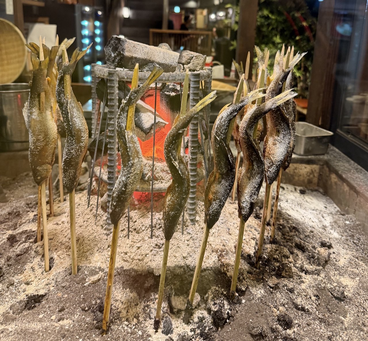 Если уж играть в историческую Японию, то до конца! Поэтому еду мы тоже заказали традиционную, без скидок на европейский вкус. На столе оказались жареная копчёная селёдка, маринованные корешки, супы с неожиданными текстурами и устрица, которую при тебе выкладывают на раскалённые камни. Она дёргается в последний раз и превращается в блюдо. Для японцев это, возможно, комфортная классика, но европейскому вкусу красиво, весело, интересно, но почти несъедобно.