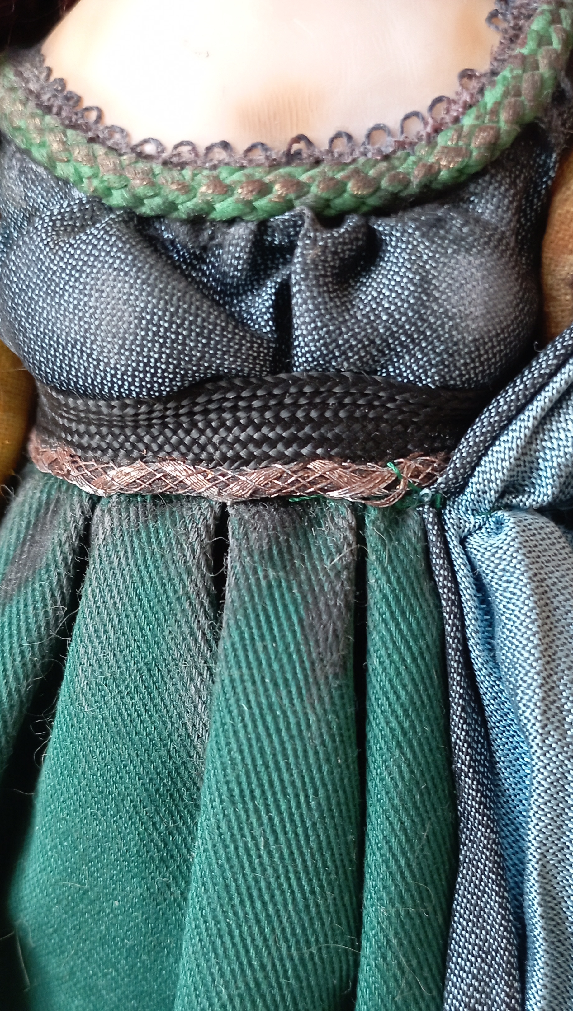 Смешанная техника: голова, руки, ноги из полимерной глины FIMO, тело текстильное, набивка синтепоном. Текстильная одежда. Роспись акрилом. Руки и ноги подвижны. На спине петелька, за которую кукла крепится в артбоксе, при желании её можно вынуть из бокса. Высота куклы 27 см.