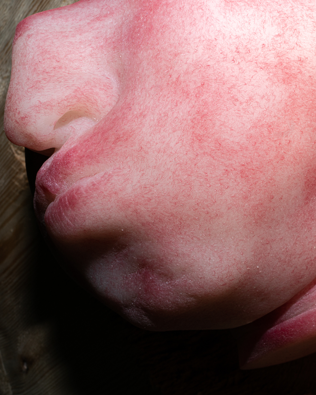 Экспозиция сталкивает зрителя с увеличенными, фрагментированными, искаженными лицами, выполненными в различных техниках и материалах: силиконовыми масками, макрофотографиями, акварельными портретами и скульптурными изображениями бесформенных тел. Кожа здесь становится поверхностью, лицо — объектом, а человеческая фигура растворяется в текстурах, складках и искажениях.