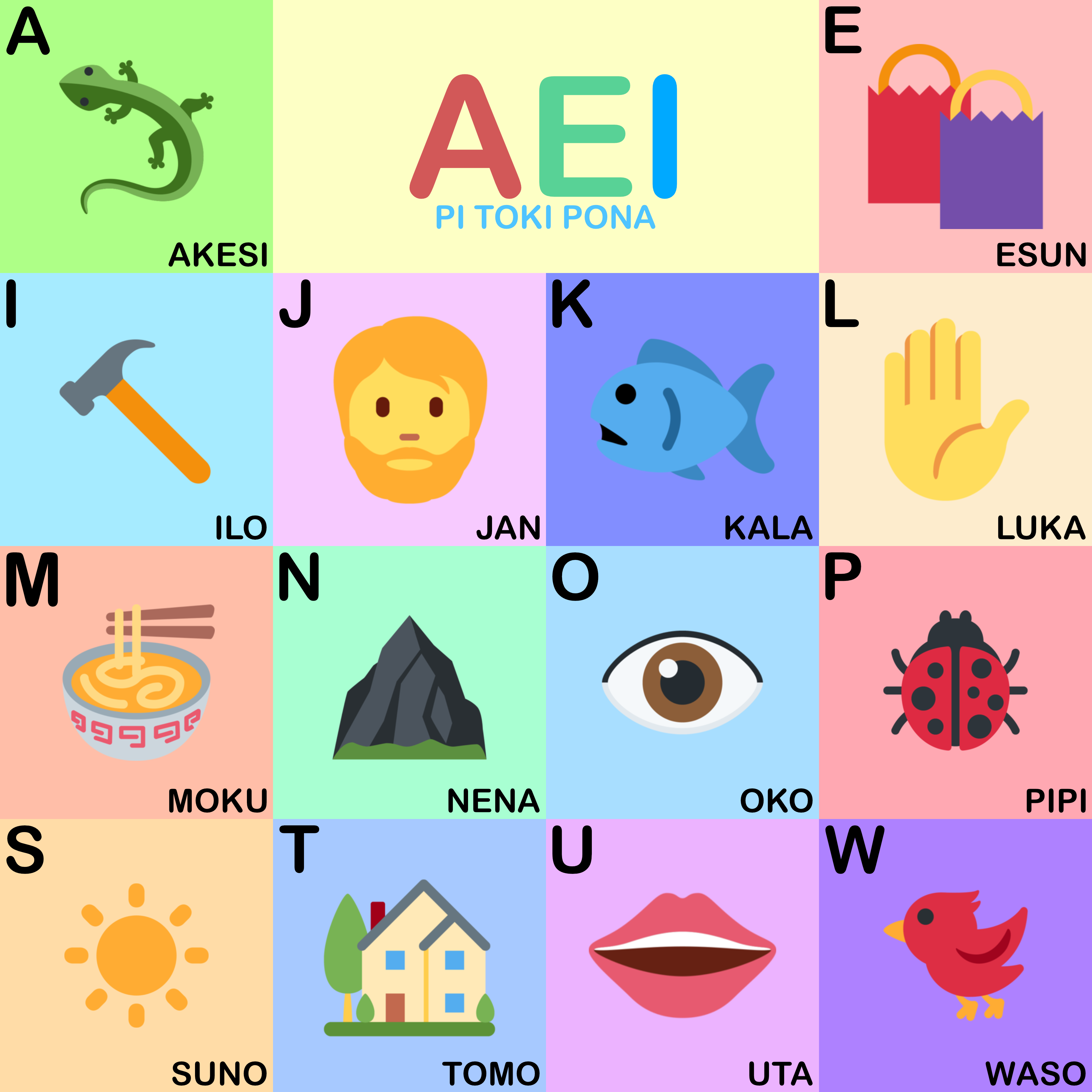 Некоторые сочетания запрещены как труднопроизносимые: ji, ti, wo, wu. Помимо латиницы, в сообществе обсуждаются альтернативные системы письма, включая пиктографическую систему sitelen pona.