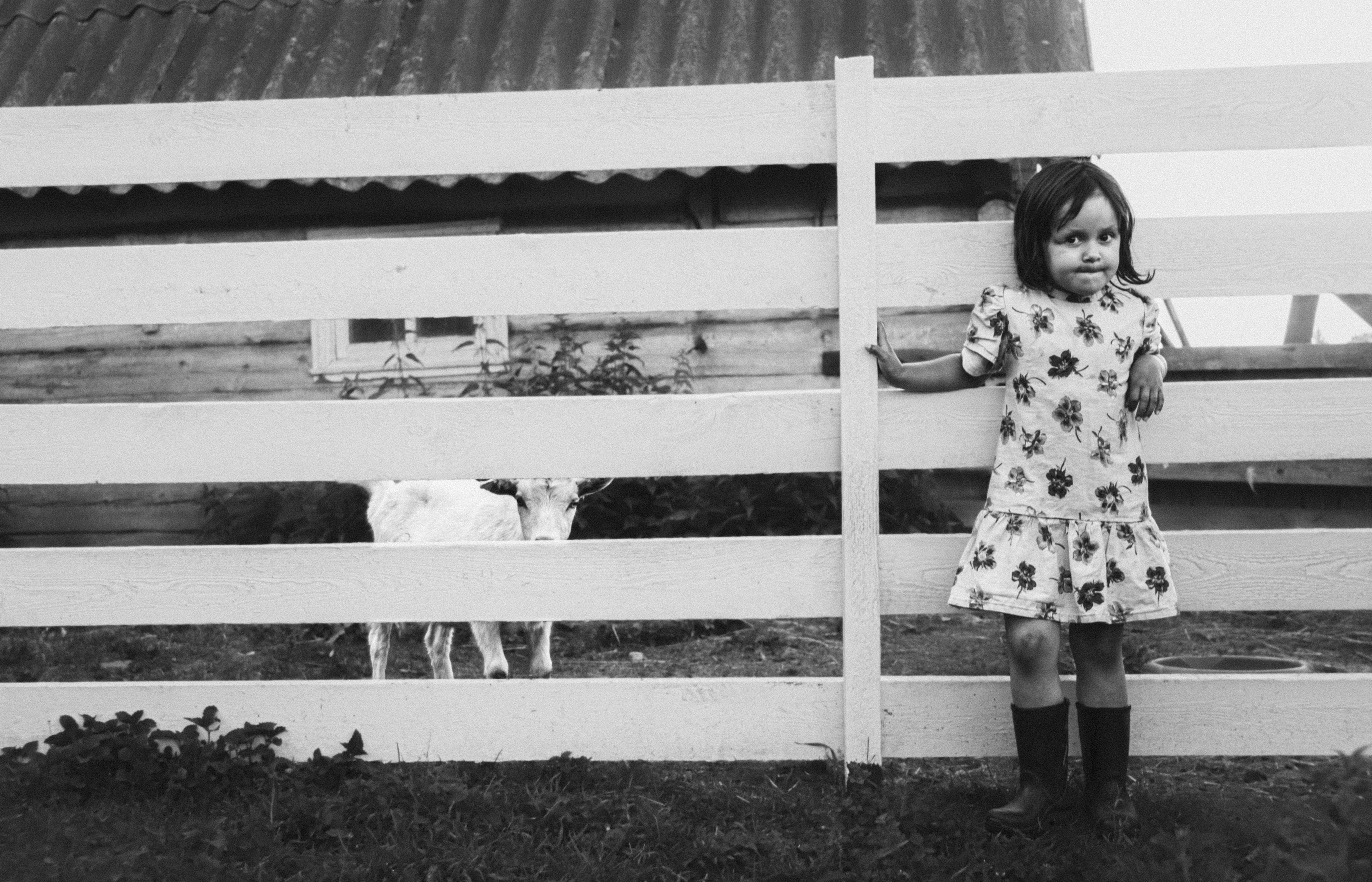 Среди участников – Варвара Бурцева, Валя Корабельникова, Ольга Рербо, Энди Го, Михаил Пестряев и другие. На одной из черно-белых работ Бурцевой смотрит на зрителя крошечная девочка в нежном платье в цветочек и грубых резиновых сапогах. Разбитая коленка, блестящее черное каре, закушенная губа. Крошечная ладошка по-хозяйски положена на забор, из-под досок которого высовывается козья морда. Этот кадр рассказывает историю становления маленькой сырной фермы в Псковской области. Ее хозяева – городские жители, вынуждено перебравшиеся в деревню. Здесь они решили довериться случаю и начать сначала: завести дюжину нубийских коз и позволить своей дочери проживать совершенно изумительное детство, пока родители налаживают быт и обрастают первыми клиентами. Эта девочка – в отчетливом родстве с героинями Астрид Линдгрен, того и гляди сейчас оседлает шоколадную изящную козу и помчится на ней по полям. Работа и о доверии, и о любопытстве, и о том самом начале.