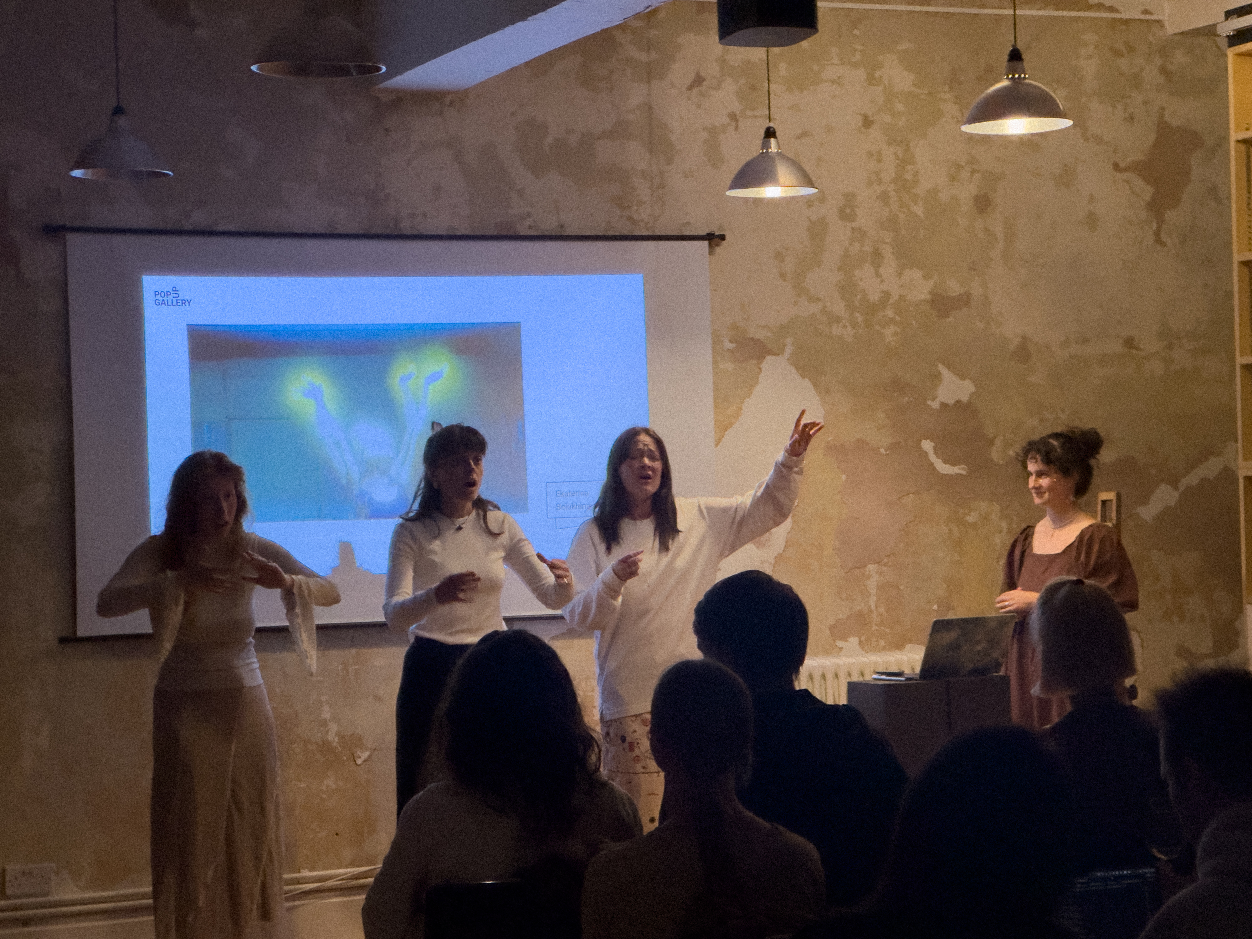 Более того, некоторые фотографии были озвучены проектом PASСOL – это вокальный импровизированный перформанс. Его участницы (на выставке их было трое) превращают увиденную или услышанную историю в вокальную импровизацию, иногда со словами, иногда без. В этот раз PASCOL воспевали устойчивую ступень – фотографии.